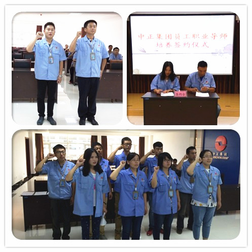 2015年9月8日上午8:30,集團(tuán)駐地舉辦了員工職業(yè)導(dǎo)師培養(yǎng)簽約儀式和干部員工宣誓儀式。工程公司3名新員工與導(dǎo)師正式簽約。集團(tuán)駐地9名干部員工面對(duì)司旗,莊嚴(yán)宣誓:忠誠(chéng)集團(tuán)事業(yè),秉承集團(tuán)宗旨,弘揚(yáng)集團(tuán)精神;團(tuán)結(jié)協(xié)作、努力進(jìn)取;全心全意,爭(zhēng)先創(chuàng)優(yōu);為興我中正,而竭盡全力。